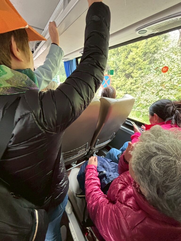 お昼はバスの中で軽食、パンとバナナとみかんを添乗員さんが用意してくれてました✨そこから