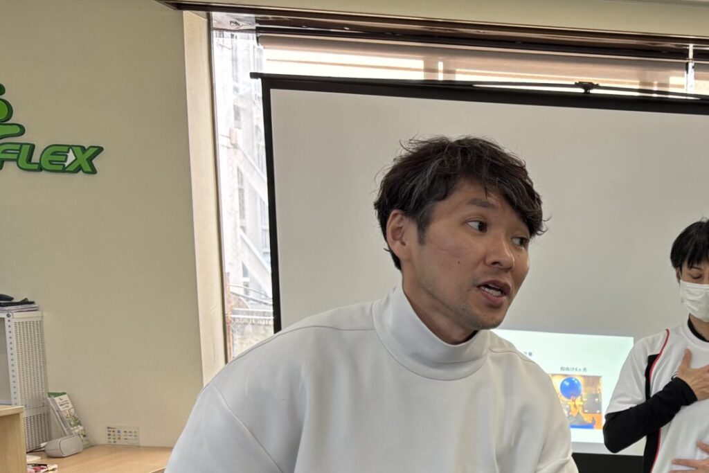 講師の杉山幹さんは手技と運動療法どちらにも精通されていて、フレックス津田沼の目指す方向にリンクする敏腕カリスマトレーナー。