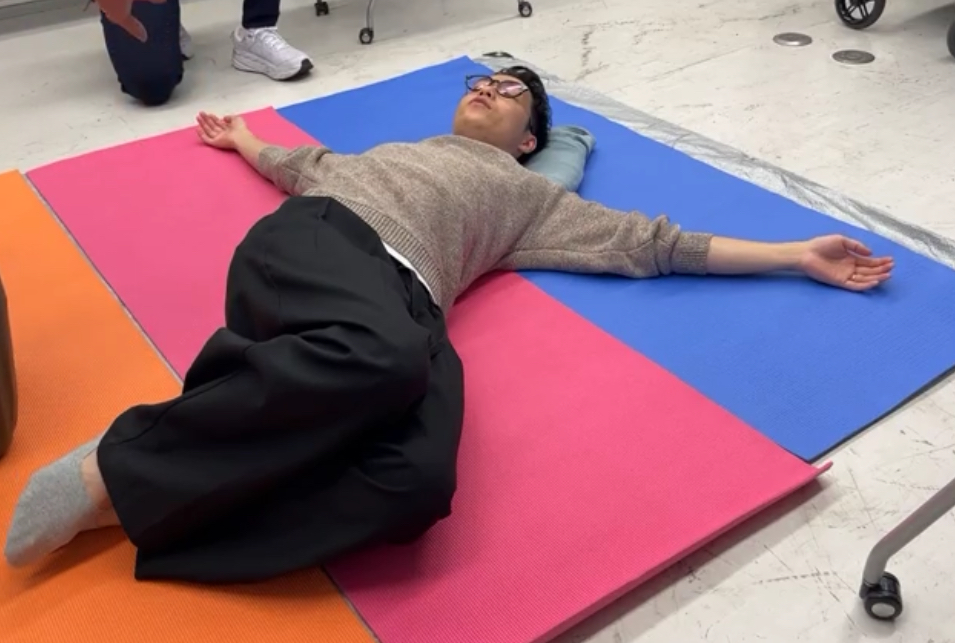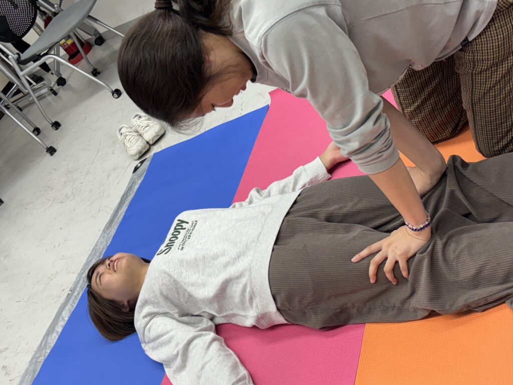 赤ちゃんを抱っこしながらも、ちゃんと学んでましたよ❗️体の緊張を取るために、基本は「脱力」だけど筋肉が硬すぎたり、そもそも脱力をやったことがない人は「手技で緩める」のが早い。だけど自分でできることを増やしていくのが理想。ご自宅の環境を伺った上で、提案できるセルフエクササイズのバリエーションを増やしていくことも目標の一つです❗️