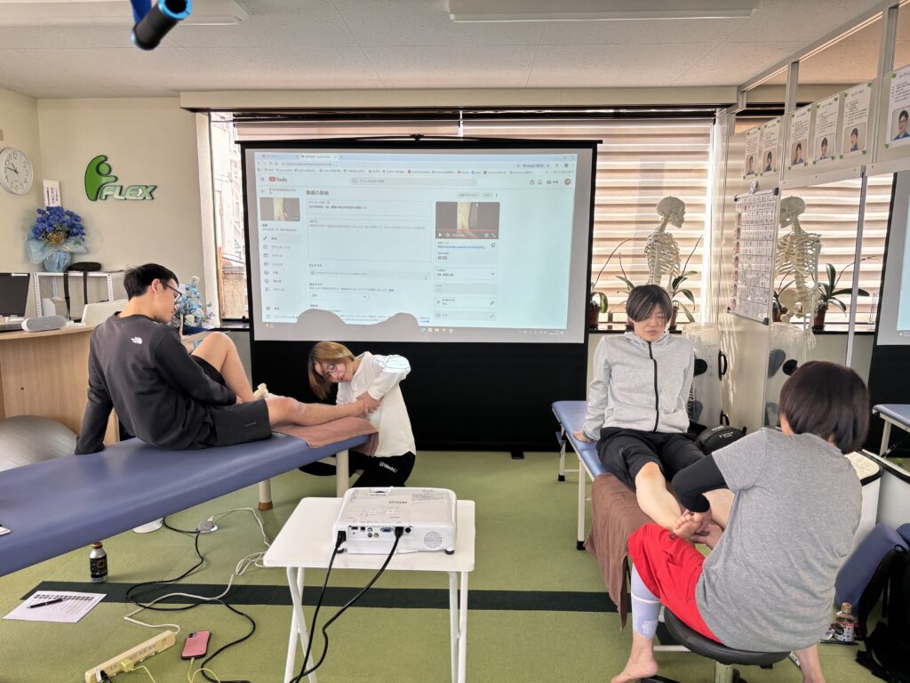 2月2日(月)はその予習復習会。今月26日に参加予定のテーマ「足関節」で、過去に研修参加した方の動画を参考にしながら、当日の流れに沿って「どんなことをやるのか」の概要を教わりました。