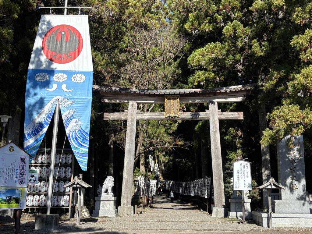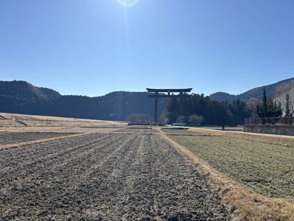 かつては大斎原(おおゆのはら)と呼ばれる川の中洲に鎮座されていましたが、明治の大洪水で大半が流され、流出を免れたお社を現在の高台に移築したそうです。大斎原には現在でも日本一の大きさを誇る鳥居が残っていました。